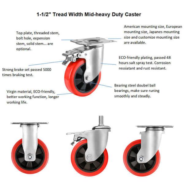 5 Inch Expansion Insert Casters Without Brake Insertion Caster Industry Caster Wheels Pvc Pu Rubber Tpr ESD Caster Wheel Images |
